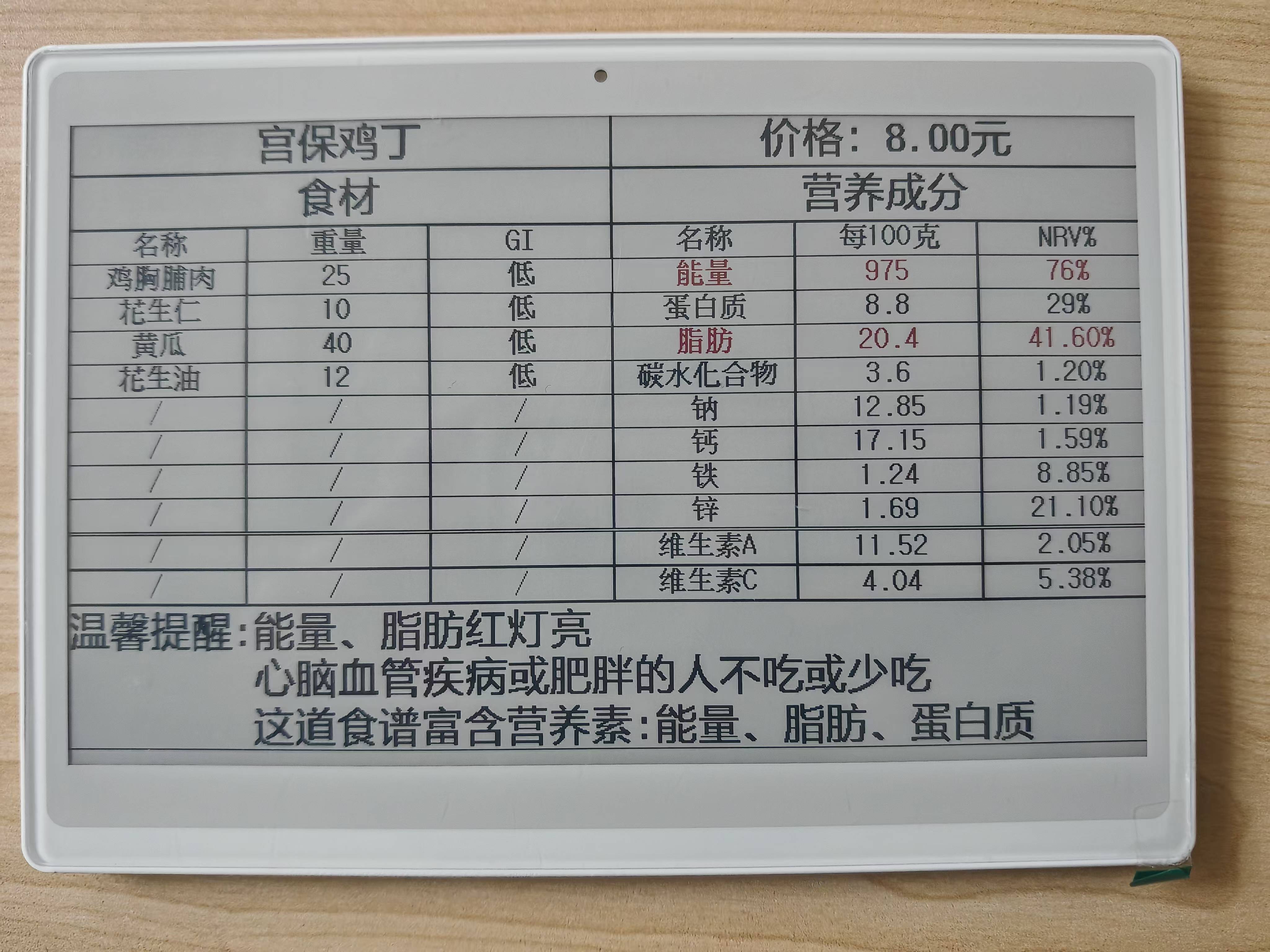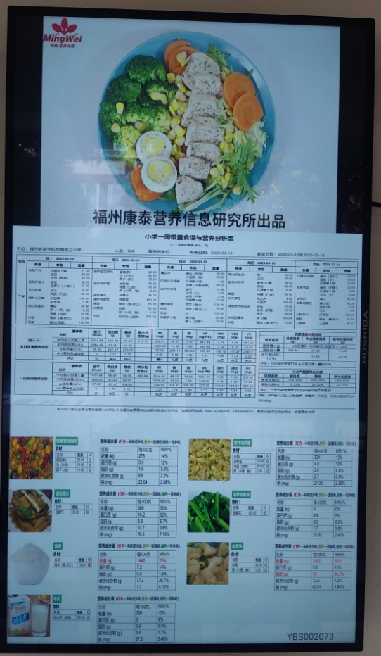 替代传统的纸质菜品价签,物联网电子屏可以自动显示食堂打菜窗口三餐不同菜品的营养标签。