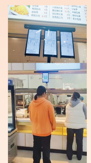 在每一道菜品前面摆放或壁挂一个物联网小屏,根据三个部委联合发布的《营养健康食堂建设指南》要求,不仅能自动显示每一道菜品的营养标签,而且还会对这道菜品的营养特点和适宜人群进行提示。以便就餐者在排队打菜的时候,根据每个人自身状况来科学地挑选对自己健康有益的菜品,从而实现科学引导营养就餐、提升用餐人员营养就餐意识,达到让供餐者懂营养、让用餐者会选择营养食谱,加快促进全社会形成健康饮食方式。