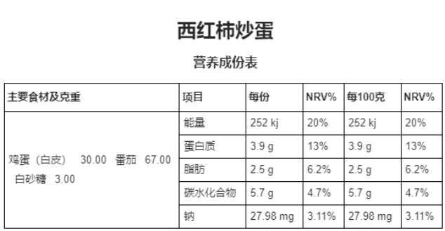 3、营养标签生成: